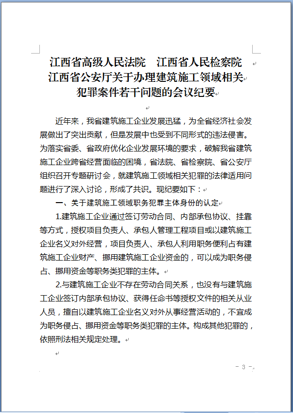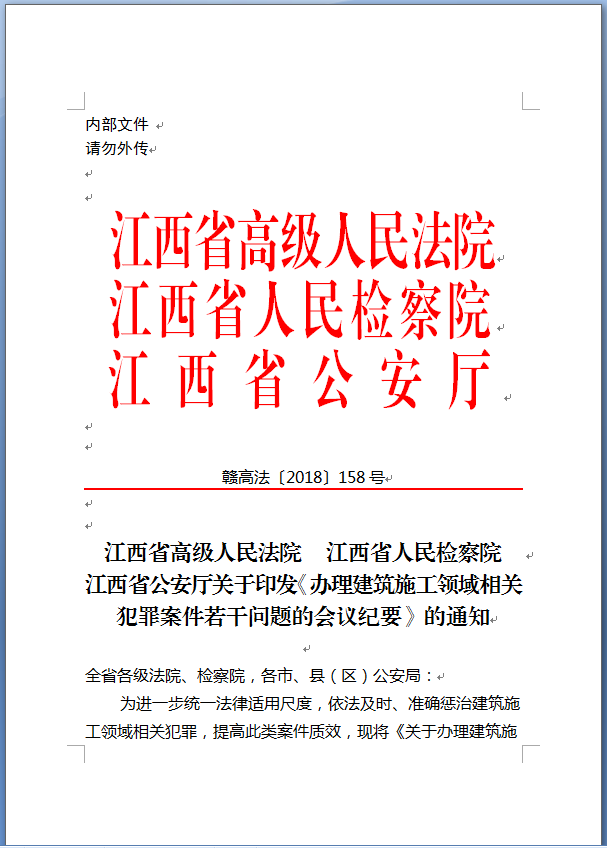 关于印发《办理建筑施工领域相关犯罪案件若干问题的会议纪要》的通知