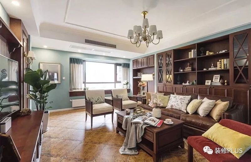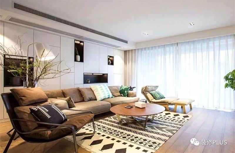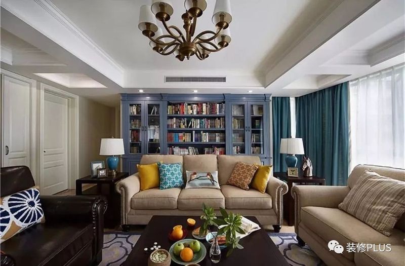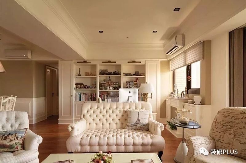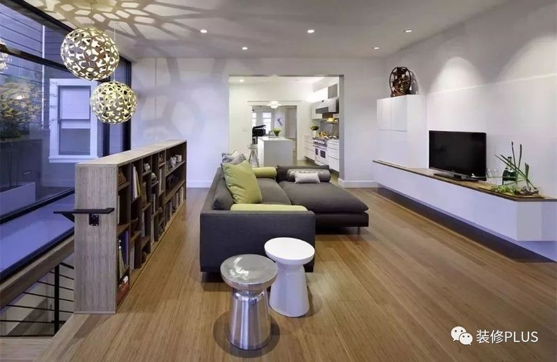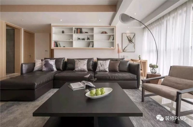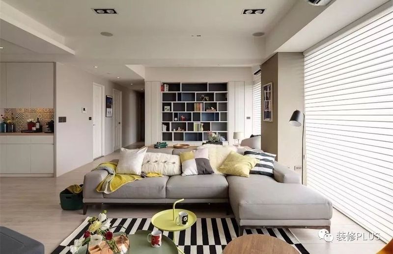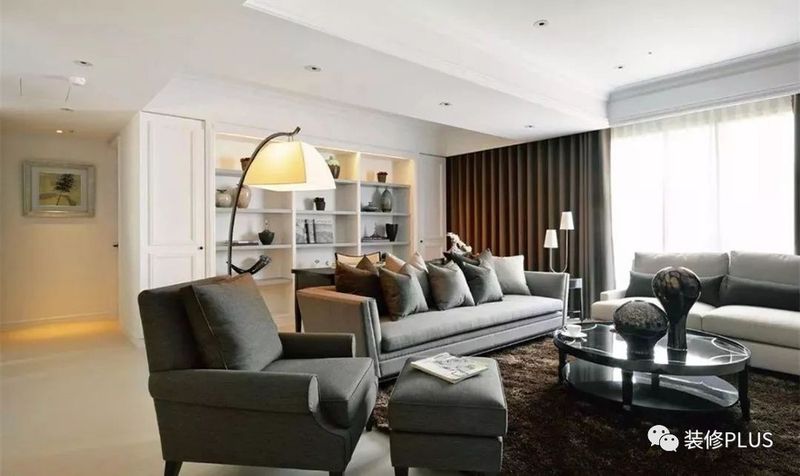 如果客厅的宽度太大了,那么就要反过来的思路,在沙发后面摆放书桌或者留出过道,然后在沙发后方的墙面装书柜,这样利用起来的空间就会显得更加宽敞大方点。