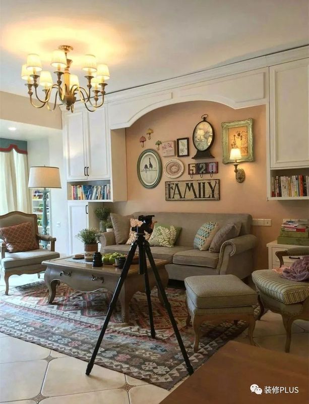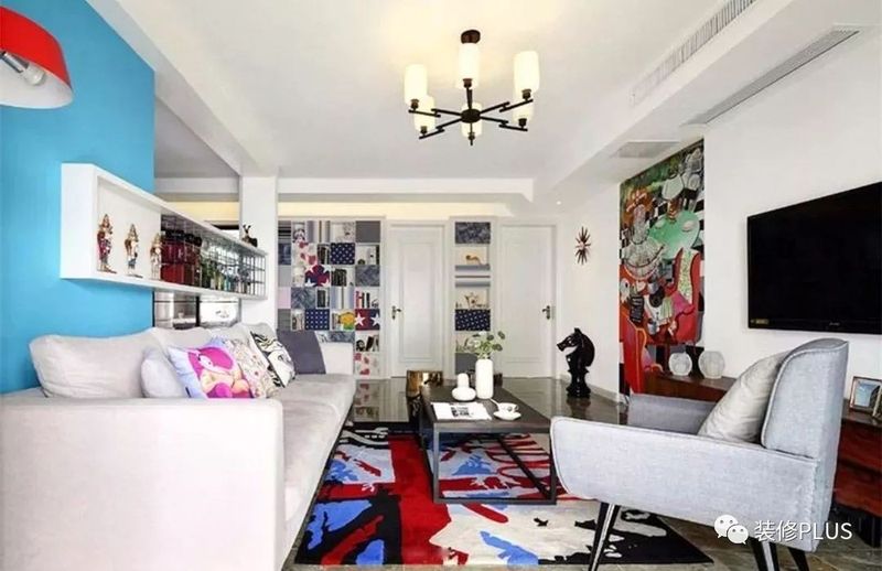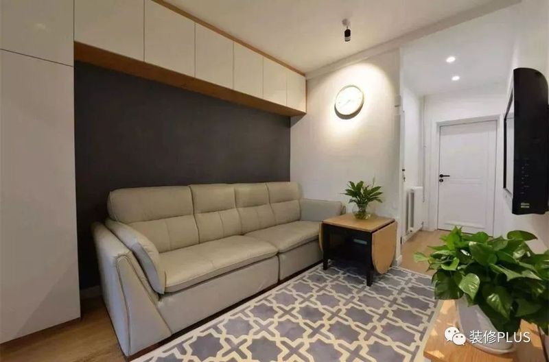 如果空间足够的话,直接把沙发墙装成收纳柜,这样就可以把自己喜欢的藏品、书籍、摆饰等物品摆到这个收纳架的上面去了。