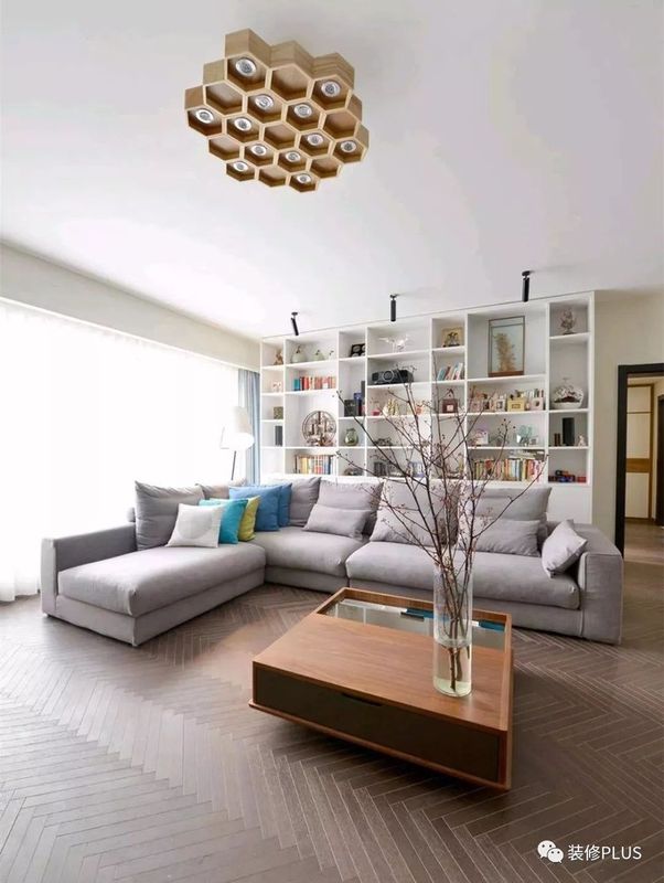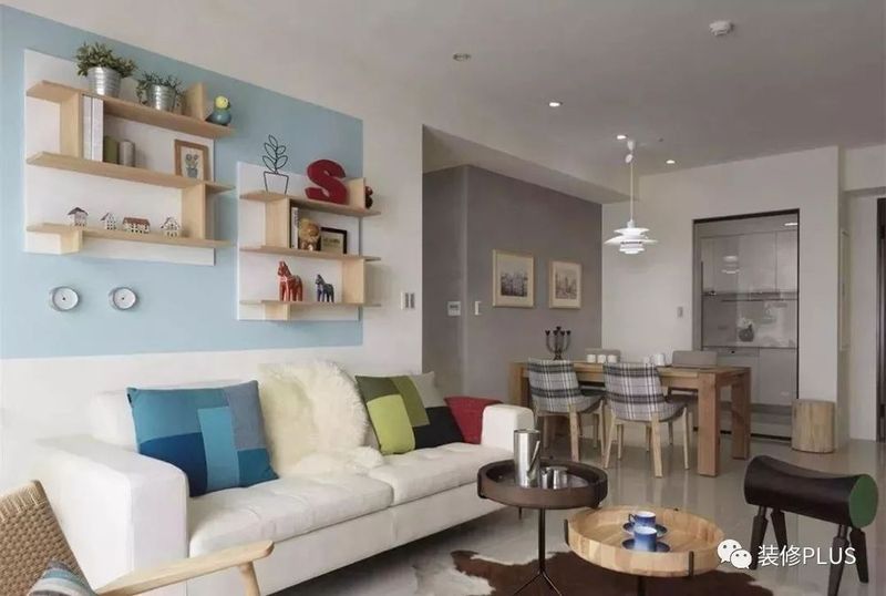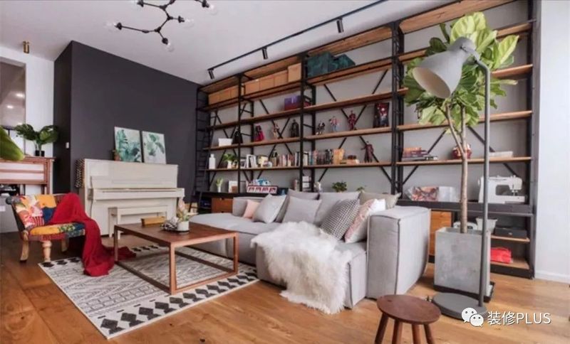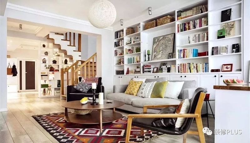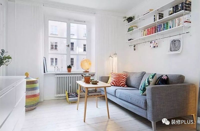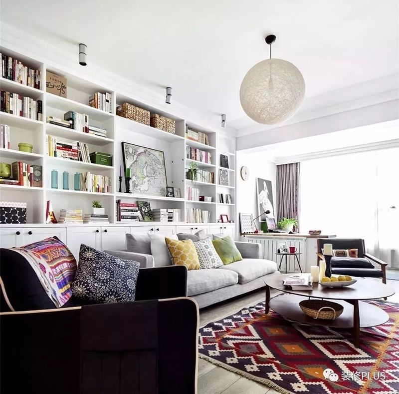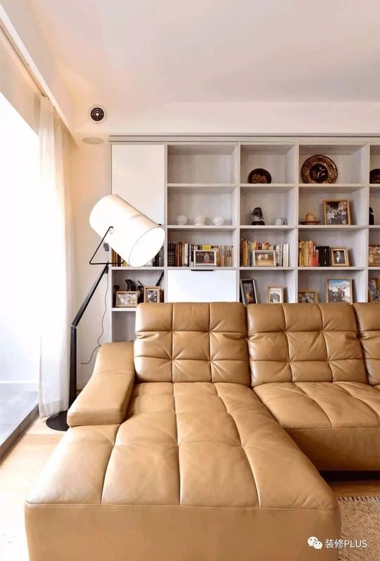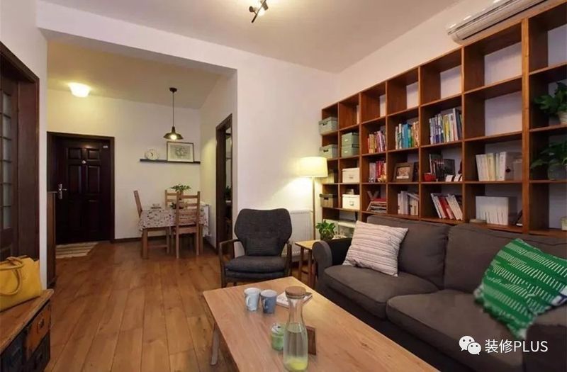 如果客厅的宽度确实比较小,那么装个书架后就显得过分拥挤了,这个时候不妨换成搁板书架,这样既不占用空间又能在沙发墙上加一个书架,非常的实用。