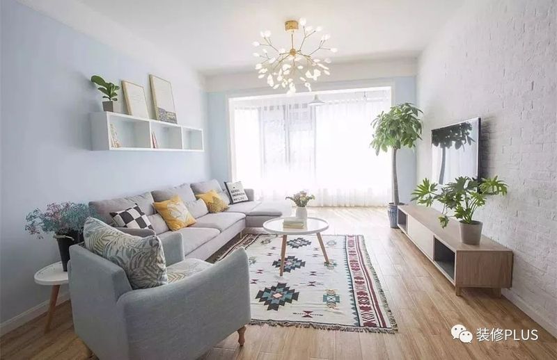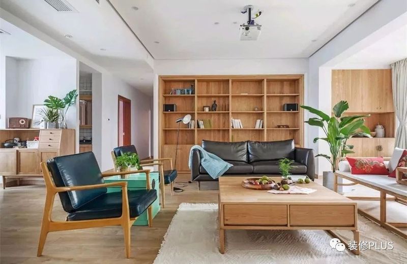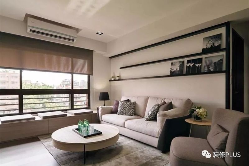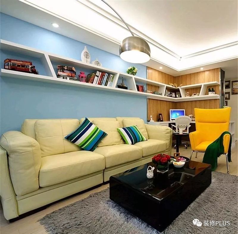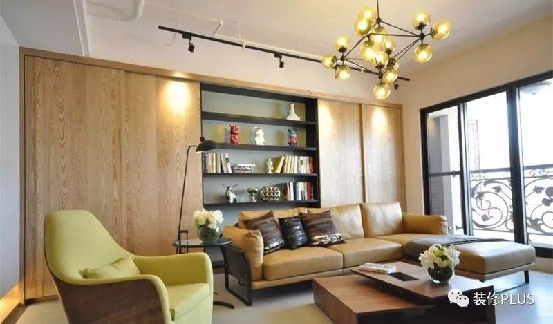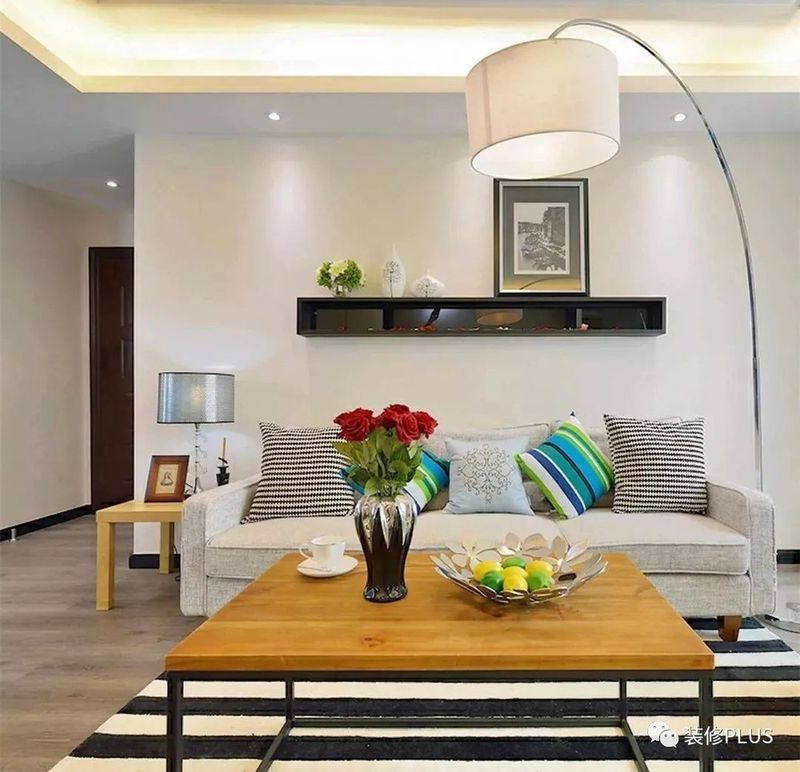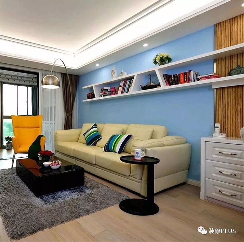 如果客厅的宽度确实比较小,那么装个书架后就显得过分拥挤了,这个时候不妨换成搁板书架,这样既不占用空间又能在沙发墙上加一个书架,非常的实用。