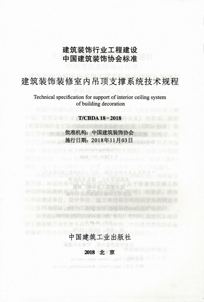 TCBDA 18-2018建筑装饰装修室内吊顶支撑系统技术规程