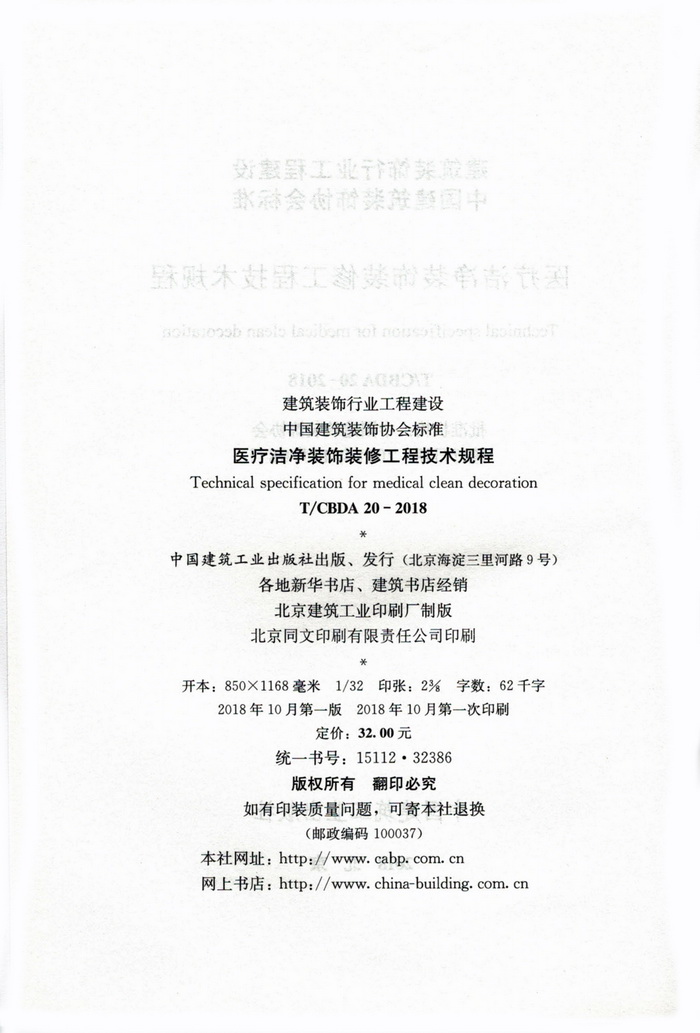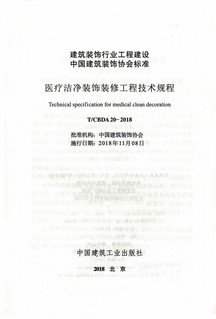 TCBDA 20-医疗洁净装饰装修工程技术规程