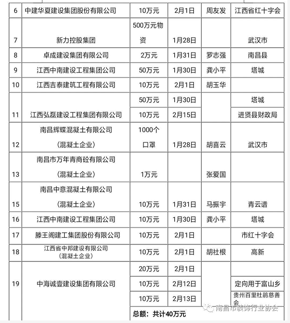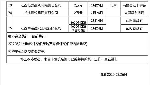停工不停爱心,南昌市建筑装饰行业慈善捐赠统计工作一直在进行