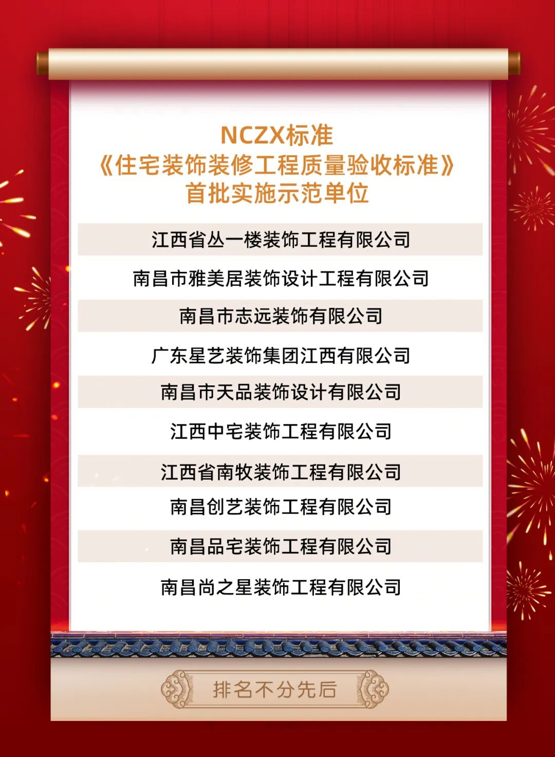 南昌市住宅装饰装修工程质量验收标准“首批实施示范单位”名单正式发布!