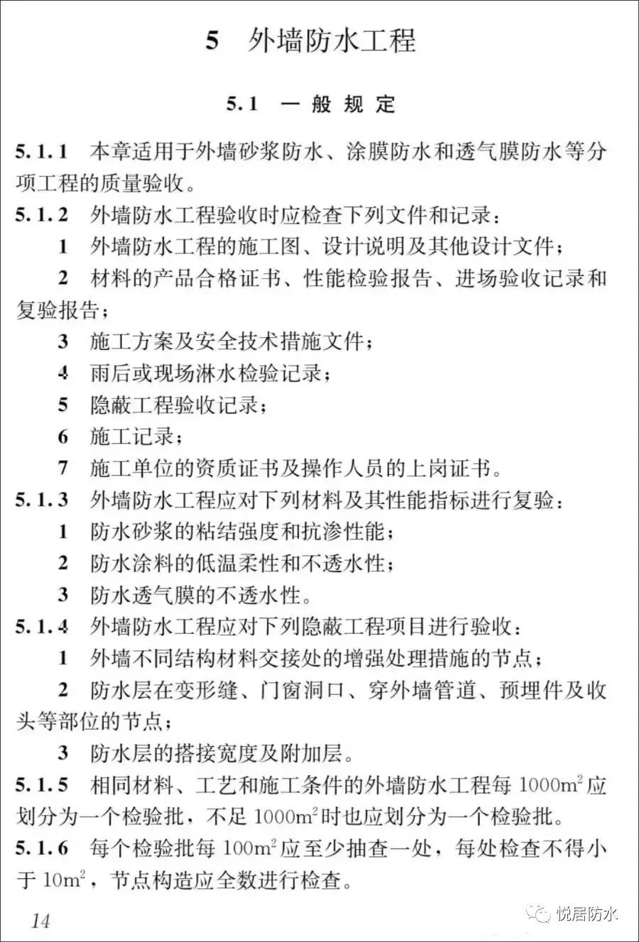 新标准增加的外墙防水工程验收要求,将有望改变外墙大量渗漏水严重影响正常使用无处管的局面,为有效解决外墙渗漏水难题创造条件。