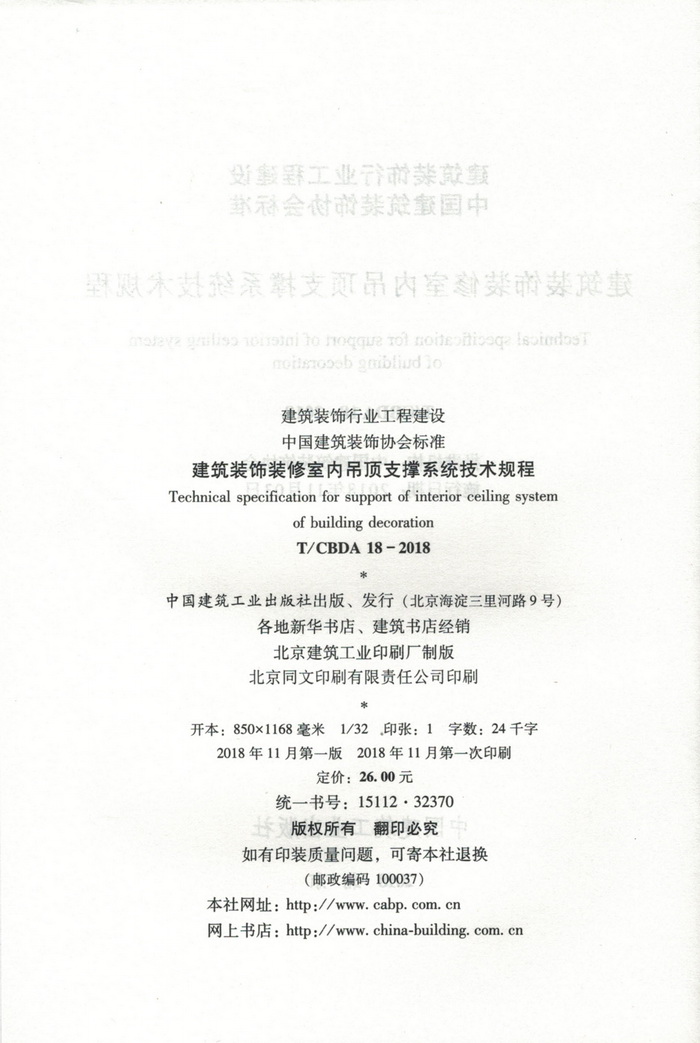 TCBDA 18-2018建筑装饰装修室内吊顶支撑系统技术规程